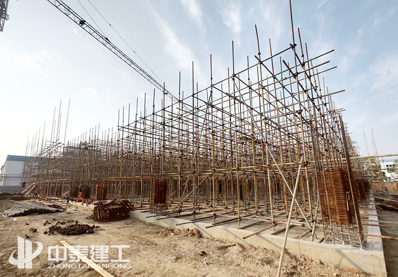 名目于2020年7月25日完工,颠末前期的不懈尽力,在骄阳炎炎的情况下,顺遂实现园地平坦、土方开挖、根本施工。2020年9、10月间,面临首层层高7.5米和二层层高跨越8米的倒霉条件下,中泰建工严酷根据经专家论证经由过程的高峻支模计划停止模板施工,当真查抄支持系统。确保到达施工的宁静情况下,顺遂实现模架支持系统搭设。于2020年11月16日顺遂实现布局封顶。
